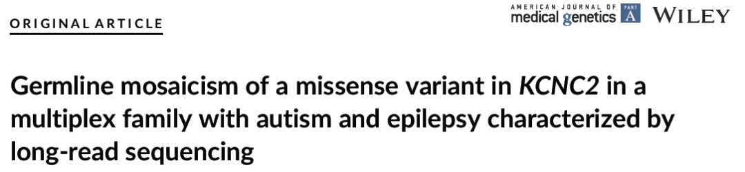 参考文献:Germline mosaicism of a missense variant in KCNC2 in a multiplex family with autism and epilepsy characterized by long-read sequencing