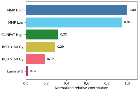 本研究针对早期乳腺癌复发风险预测的临床需求,整合MammaPrint?基因组风险分型、放疗剂量(BED)、分子表型(Luminal A/B)及临床病理因素,构建了Firth惩罚逻辑回归模型。结果显示模型区分度良好(AUC=0.755),首次报道低剂量放疗(BED<60 Gy)较未放疗组显著改善总生存(p=0.0475),为个性化辅助治疗决策提供量化工具。