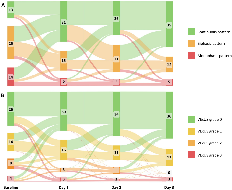 本刊推荐:为解决危重症患者液体去留时机判断难题,研究人员开展肾内静脉血流(IRVF)模式与静脉超负荷超声(VExUS)评分的前瞻性研究,发现不连续IRVF模式可高敏感预测液体去除成功(OR=4.31),且其改善与NT-proBNP下降显著相关,为床旁评估静脉充血提供了生理学新工具。