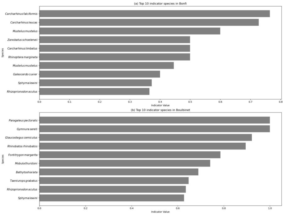 本研究针对西非地区缺乏物种特异性渔获数据的问题,对几内亚水域四个鱼市场的软骨鱼类(主要为蝠鲼及其他鲨鳐类)进行了10个月的市场调查。研究发现94%记录物种被IUCN评估为受威胁物种,其中Mobula thurstoni为主要记录的蝠鲼物种,且不同市场存在显著体型差异。通过指示种分析发现Bonfi市场以Carcharhinus falciformis等鲨类为特征种,而Boulbinet市场以Paragaleus pectoralis等鳐类为特征种。价格记录显示鳐类肉类为主要经济驱动因素。该研究为西非软骨鱼类保护提供了关键基线数据,对区域渔业管理具有重要指导意义。