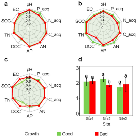 本研究针对土地整理后烟草生长差异的根际土壤机制展开,通过分析土壤生化特性、酶活性及微生物养分限制,发现Good与Bad生长表型间土壤质量指数(SQI)、碳氮磷获取酶活性(C/N/P_acq)及生态系统多功能性(EMF)均无显著差异,微生物普遍受磷限制。结果表明烟草生长更可能受微生物群落及管理措施调控,为土地整理后农业优化提供了新视角。