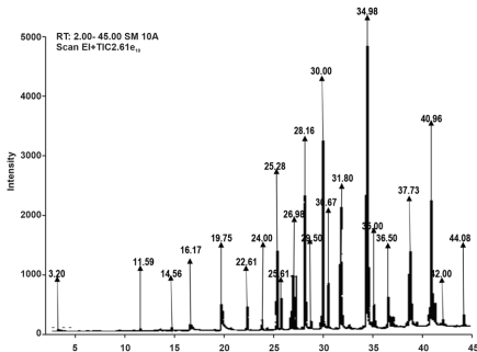 飞机草中鉴定出4H-吡喃-4-酮(4H-pyran-4-one)、十六烷酸(n-hexadecanoic acid)等物质,非洲罗勒则以丁香酚(eugenol)、角鲨烯(squalene)为主要活性成分。两者共享石竹烯(caryophyllene)这一神经毒剂前体。