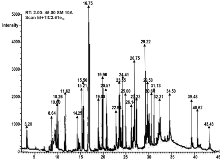 拉多克阿金托拉科技大学团队采用冷浸法提取两种植物叶片活性成分,通过GC-MS鉴定出22种(飞机草)和28种(非洲罗勒)化合物。设置5%、10%、40%、100%四个浓度梯度,以接触喷洒、熏蒸和食物掺入三种方式处理家蝇,每1/2/4/6/8/12/24小时记录死亡率,并与合成杀虫剂对比。数据采用Duncan多重检验分析。