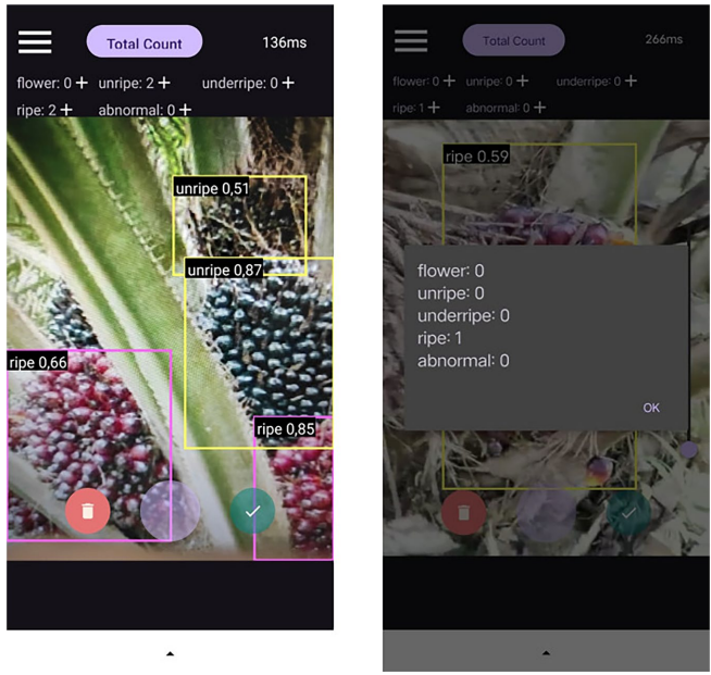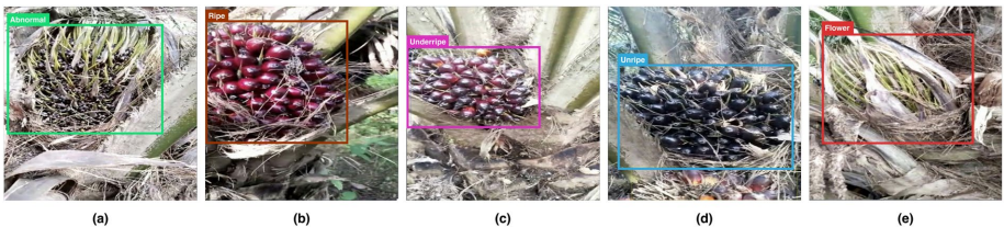 数据集采集自印尼中加里曼丹商业种植园,包含10,207训练图像(未熟4,990张)、2,896验证图像和1,400测试图像。每张图像均标注COCO格式边界框,涵盖部分可见、低对比度等真实场景挑战。