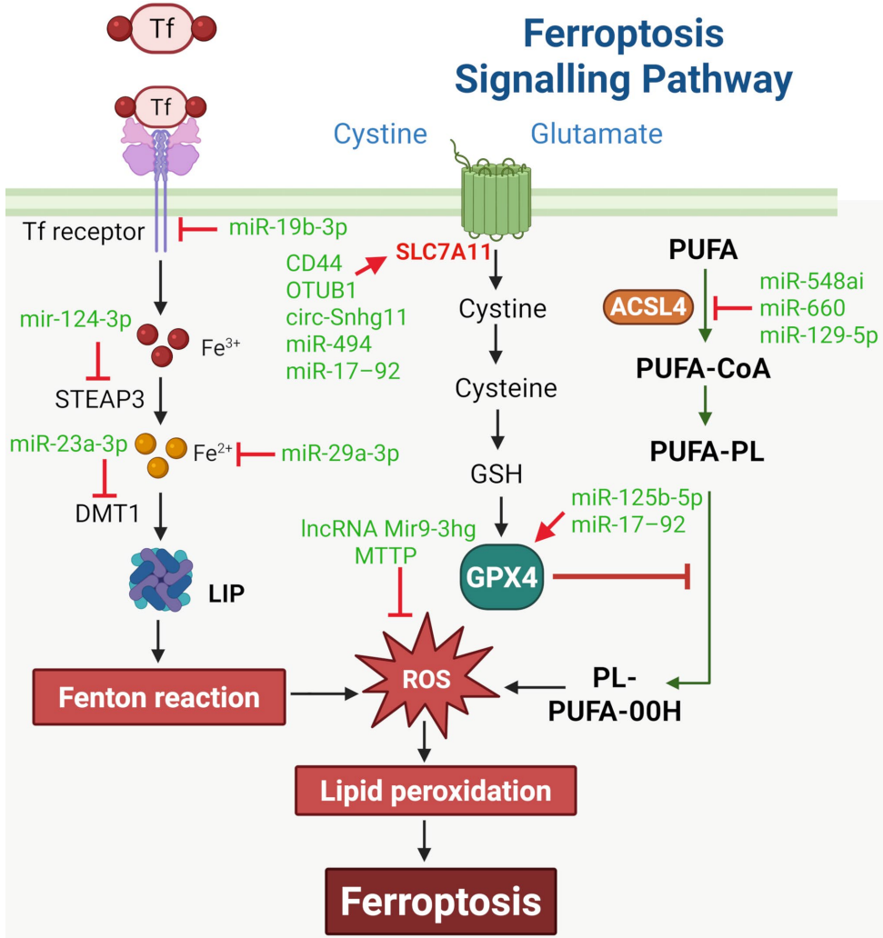 miRNA调控:如miR-4443靶向FSP1、miR-23a-3p抑制DMT1等