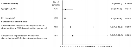 为破解这一难题,台湾台中荣民总医院的Shin-Shin Liu、Shih-Chao Feng等学者在《Infectious Diseases and Therapy》发表了一项开创性研究。他们组建了包含呼吸科医师、结核病个案管理师、眼科医师在内的多学科团队,对476例接受EMB治疗的结核及NTM感染患者开展前瞻性程序化监测。通过标准化视觉功能评估(包括Landolt视力环测试和石原色觉检查),结合严格诊断标准(需满足1项主要+2项次要标准),首次全面揭示了EON的流行病学特征和转归规律。