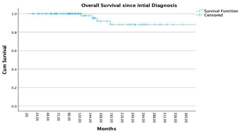 研究采用三大关键技术:1)基于CT/MRI融合影像的精准靶区勾画;2)分次立体定向放疗(FSRT,96%患者)与质子立体定向放射外科(PSRS)的个体化选择;3)采用Common Terminology Criteria for Adverse Events(CTCAE)v5.0标准系统评估毒性。所有患者来自德国三级医疗中心,中位随访时间达107个月(最长38.7年),确保数据可靠性。
