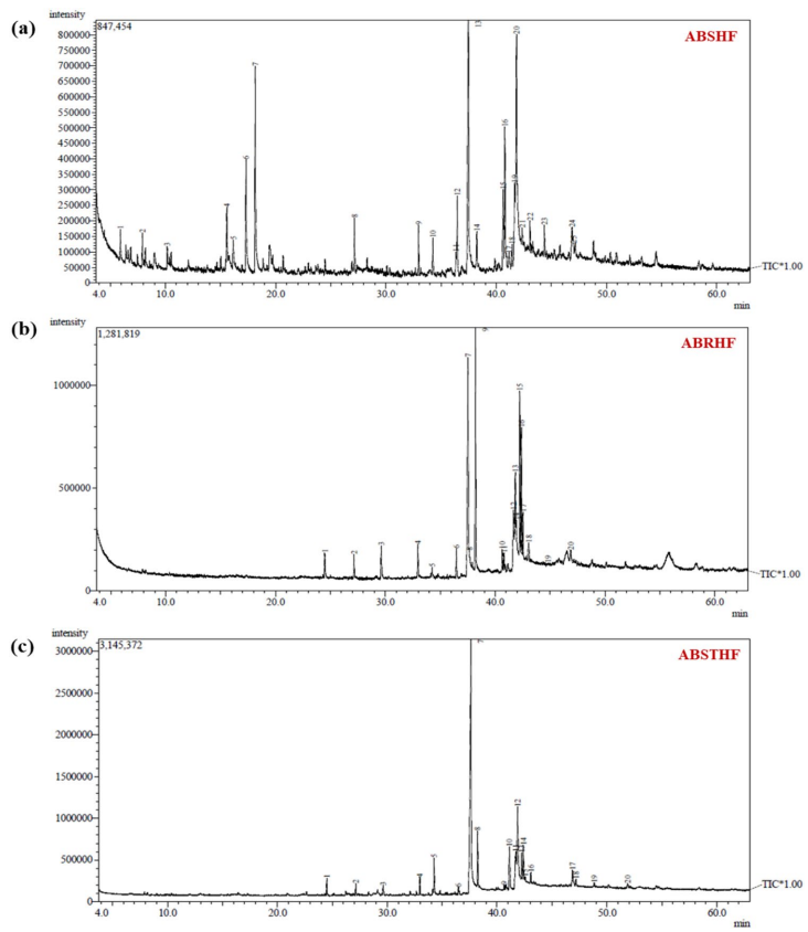 GC-MS分析显示,牛膝种子、根和茎的正己烷馏分主要含有n-十六烷酸、(Z)-9-十八碳烯酸、十六烷酸乙酯、(Z,Z)-9,12-十八碳二烯酸乙酯和(E,E)-2,4-癸二烯醛等活性成分,占总面积的80.3%-95.6%。这些化合物被认为是贡献杀虫活性的重要成分。