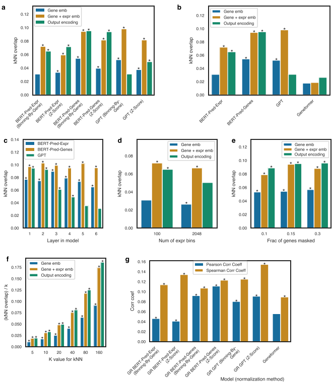 研究人员开发了Attribute Learning Index来综合评估模型学习基因生物属性的能力,该指数是调整兰德指数(ARI)、Fowlkes-Mallows指数(FMI)和标准化互信息(NMI)的平均值。结果显示,采用"Binning-By-Gene"标准化的模型在学习基因生物属性方面显著优于基于z-score的方法。