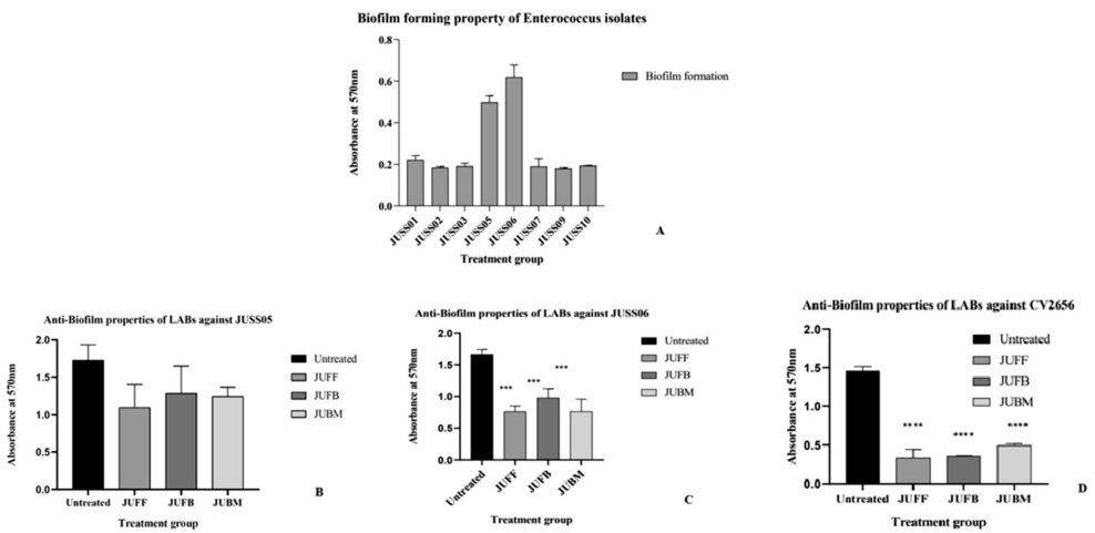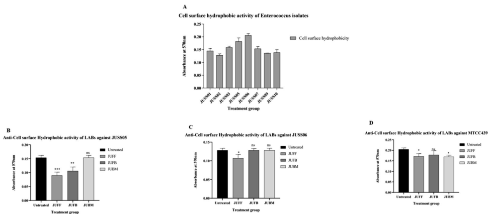 本研究针对环境粪肠球菌(Enterococcus faecalis)的耐药性与毒力问题,通过从传统发酵食品中分离乳酸菌(LAB),评估其抑制病原菌生物膜形成、自聚集和表面疏水性的能力。结果表明,嗜热链球菌(JUBM)和戊糖片球菌(JUFF/JUFB)能显著降低E. faecalis的毒力特征,为控制环境肠球菌传播提供了新型生物防治方案。